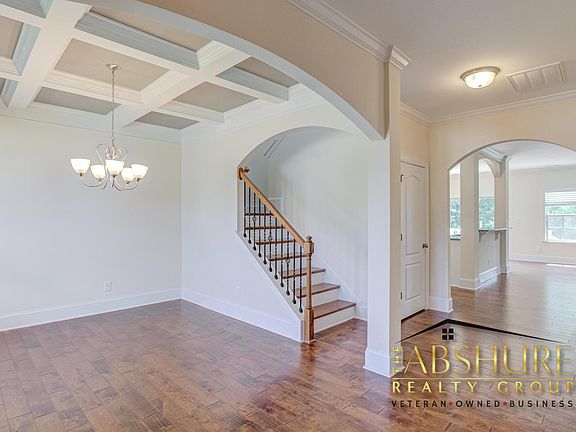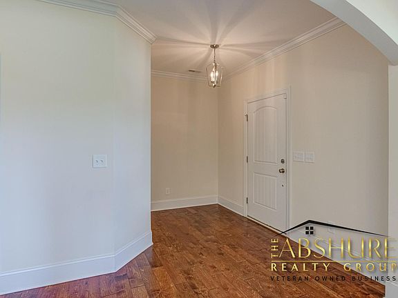 Available October 1st. Stunning 5 bed 3.5 bathroom detached home located in the upscale subdivision of Holly Pointe in Holly Springs, NC. This amazing home features luxurious finishes that you will swoon over. The 1st floor features a formal dining. open kitchen layout that leads into the breakfast nook and living room plus a 1st floor master bedroom! The elegant dining room features custom trim work and coffered ceiling that accents the natural hardwood flooring. Kitchen features premium white cabinets, granite countertops, subway tile backsplash, gas range and stainless steel appliances. There's ample space in the living room to cozy up against the gas burning fireplace or improve your TV watching experience with the built in speakers in the ceiling of the living room. 1st Floor master features a tray ceiling, large walk in closet, dual vanity cultured marble countertops, large soaker tub and ceramic tile walk in shower. Follow the oak treads up the stairs to the 2nd floor to find 4 large bedrooms 2 full bathrooms and a large bonus room. The 2 car garage has plenty of space plus it houses your tankless water heater! Custom laundry room accommodates additional storage cabinets to tuck away all of your cleaning supplies. This home is fiber internet ready with Ting. Find some time to relax on the dual level deck to entertain your guests. This home is pet friendly subject to pet fees and restrictions. Bi-weekly lawn cutting service will be included in base monthly rent. Tenant is responsible for utilities, their own washer and dryer and renters' insurance. Holly Pointe has a private pool and playground. Listing is proudly managed on behalf of the landlord by The Abshure Realty Group, a Veteran Owned Business and an Equal Housing Opportunity Provider. For details, applications and screening criteria, please visit the Abshure Realty Group Property Management website. Welcome Home!
