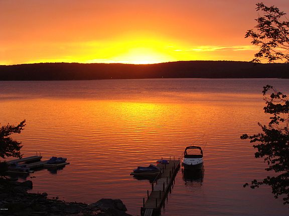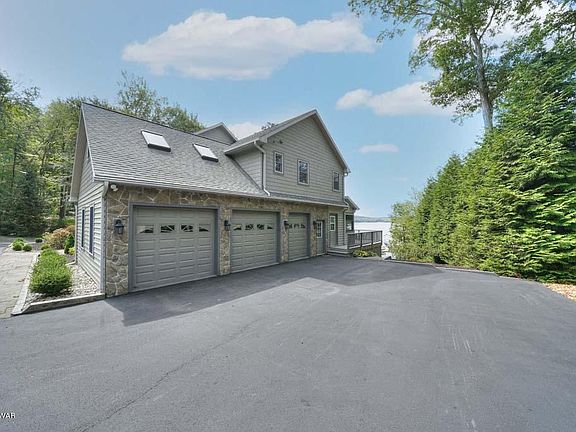 Whispering Pines Lakefront Beauty! A grand foyer welcomes you to this Lake Wallenpaupack lakefront home offering 4+ bedrooms, 3.5 baths and wide open floor plan built around the lake views. A bright & modern kitchen overlooks the breakfast nook w/ a nearby formal dining room. Enjoy the glass front living room with fireplace plus an add'l formal living room and office. Spacious bedrooms, including a master suite w/ Jacuzzi tub overlooking the lake! HUGE family room in lower level with pool table, bar, ping pong table, music room & great sitting area! The family room walks out to the covered patio w/ hot tub that overlooks your incredible lake frontage! Lakeside deck, lakeside patio w/ firepit and waterfall, paved driveway, attached 3-car garage, and SO MUCH more! Knock-out sunsets!