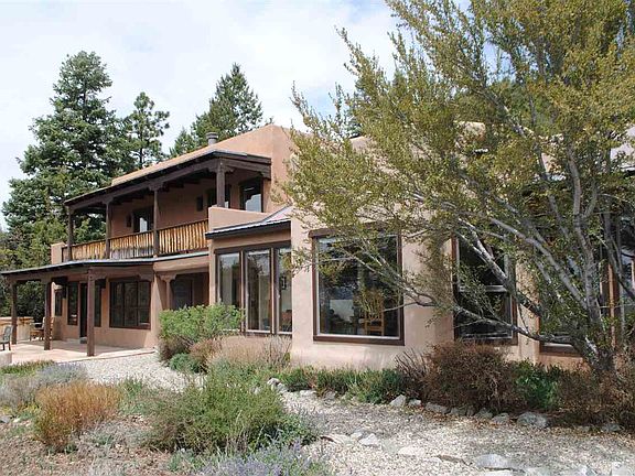 Beautiful 3093 sq. ft. 3br/2ba southwestern style home perched on 3.5 acres in desirable El Salto. Tremendous, expansive views of the Taos valley. Lovely flagstone patio. Very open floor plan. Great room w/ dining area, fireplace, saltillo tile, sitting room and an open chef's kitchen. Large library and den/rec room. 2 guest bedrooms downstairs with a luxurious master suite upstairs. Master includes a full bathroom w/ soaking tub, wood floors, corner fireplace w/ slate hearth and outdoor covered deck. The views from here are stunning!