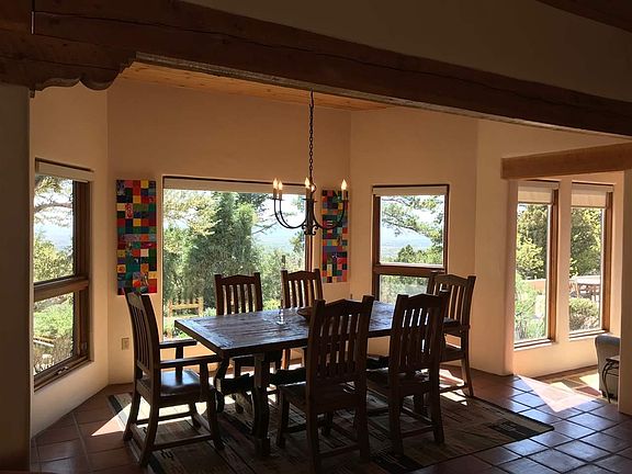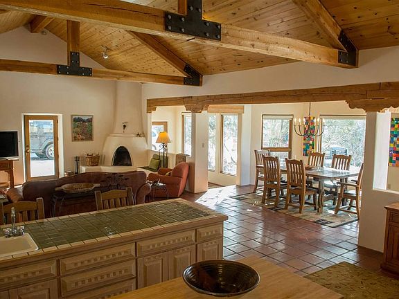 LIVE THE EXTRAORDINARY Life is better when filled with adventure. Whether you're hitting the slopes this winter, or prefer summer trekking in the Columbine Wilderness, climbing rock walls in TSV, extreme mountain biking, or kayaking in Rio Grande Gorge, this is the perfect base camp for friends and family. Tucked in the woods high up in El Salto on 3.5 acres, this stunning territorial home offers over 3000 sq ft of magnificent, open living space with three bedrooms and two baths. It is the ultimate party house. Common areas are designed for entertaining and flow out onto view filled patios. Beamed ceilings soar over the living, kitchen and dining area, with more intimate areas inside a sun room or around the kiva fireplace. The upstairs master bedroom is spacious with a cozy sitting area in front of a second fireplace and doors leading to a portal deck with views of Taos Valley and 100s of miles beyond. There is bridge access to hiking paths and wildlife behind the house from the mater suite. Wind down in the sumptuous master jetted tub or rainforest shower. Downstairs guest bedrooms and bath include their own family room with lock out potential for privacy or home share, and easy access to the flagstone patios and hot tub. Adventure awaits in every direction, and this home provides easy access to all that Taos has to offer.