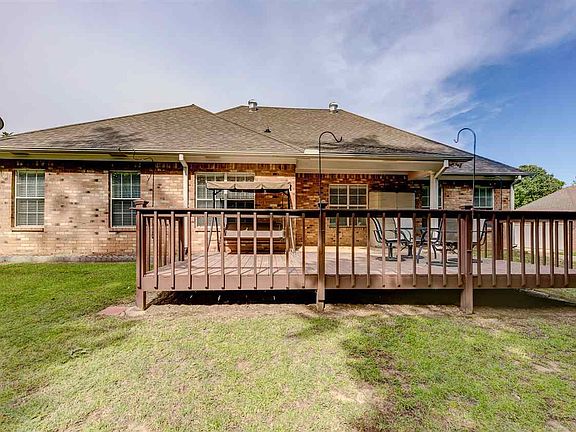 This lovely home in the quiet Cambridge Cove subdivision is a split plan with three bedrooms, two and one half baths. The family room has a fireplace with gas logs and surround sound. There are wood floors in the front entry as well as the formal dining room and ceramic tile in the baths, kitchen and breakfast area. A Jack and Jill bath connects the second and third bedrooms and there is a convenient half-bath for guests. The master bath has double vanities, a separate shower and garden tub. You will appreciate walk-in closets and ample storage. Rain or shine you can sit out back on either the covered patio or the deck which overlooks nothing but woods! Side entry garage with a storage room with work bench and extra parking area on the driveway confirm your thinking -- this is the one!