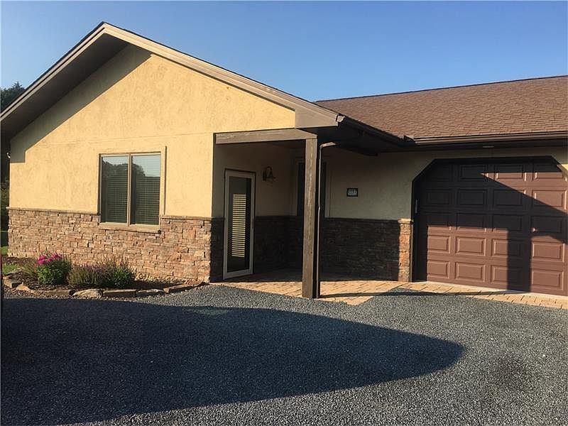 Lovely Carriage Home in a quaint community located in Somerset Township just outside of Somerset Borough. Living room and kitchen are an open concept floor plan with cathedral ceilings. Living room features manufactured wood flooring and plenty of light. A slider opens out to a covered patio with brick pavers. The kitchen features granite counters and ceramic tile floor. Master bedroom is carpeted with a walk through closet to the master bath. Bedroom 2 has access to another full bath. Hidden Laundry Closet. Central Air. Lovely covered patio with brick pavers. Located close to local stores, Dr. offices, ski resorts and all that the Laurel Highlands has to offer. You must see this gem!