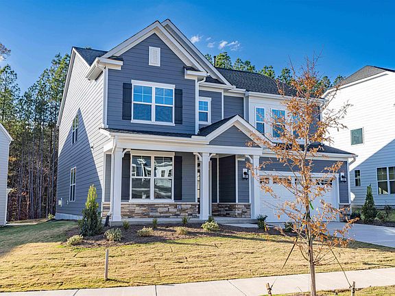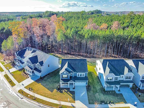 This expansive Brand new East Facing two-story home in Carolina springs backing to woods has a first-floor open plan main living area perfect for entertaining, a formal dining room, and a guest suite. Open gourmet kitchen with large island with adjacent spacious breakfast area and walk-in pantry. Outdoor living options abound with screen porch and extended patio. Upstairs is a loft surrounded by three secondary bedrooms and the luxurious owner’s suite. Owner's bath features dual walk-in closets, dual vanities, a garden tub as well as