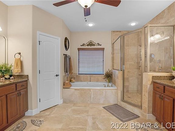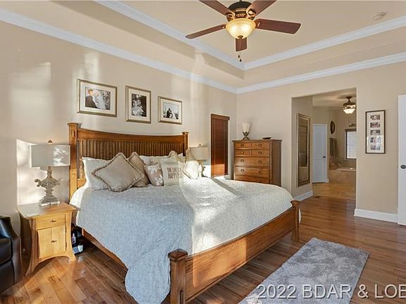 Welcome to the exclusive & gated Castlegate subdivision! Located in a large cove that you'd never have to leave, the panoramic views are breathtaking. The home offers 4 bedrooms all attached to a bathroom, 3 bedrooms with lake views, main level living, 12 foot ceilings in the living room, 9-10 foot ceilings on the lower level, granite counters, soft close cabinets, & expansive composite decking throughout the back of the home. The owner's suite offers a lake view, porch access, & an attached bathroom with split vanities, his & hers closets, a walk-in shower, & a jetted tub in which to drink wine. The lower level has a man cave bar area, lots of storage, & 3 bedrooms. One bedroom is an en-suite with a lake view, while the other 2 bedrooms share a Jack & Jill style bathroom. The lower level offers a walkout with virtually no slope to the pebble beach & a 2 well concrete dock with a storage area and bar. This is the perfect home for the entire family to enjoy the Lake lifestyle!
