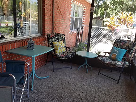 By appointment only. No lockbox on house. Beautiful pool home on a large shady double lot with huge live oak trees. Spacious bright and pretty 3 bedroom split plan with large master bedroom with ensuite with tub/shower combo, linen closet and 2 closets. Large living room with ornamental fireplace. Spacious eat in kitchen, appliances are 3 years old. Florida room with tile flooring that opens out to pool area. 2 bedrooms and additional bathroom off living room. 2 screened in porches to enjoy your morning coffee in. Utility room with washer, dryer and laundry tub included. Large vinyl pool secured with safety fence in place, with large patio in back yard along with a shed for extra storage. Garden spot as well as banana trees in the back yard. Privacy fenced back yard as well as chain link fence in front yard.