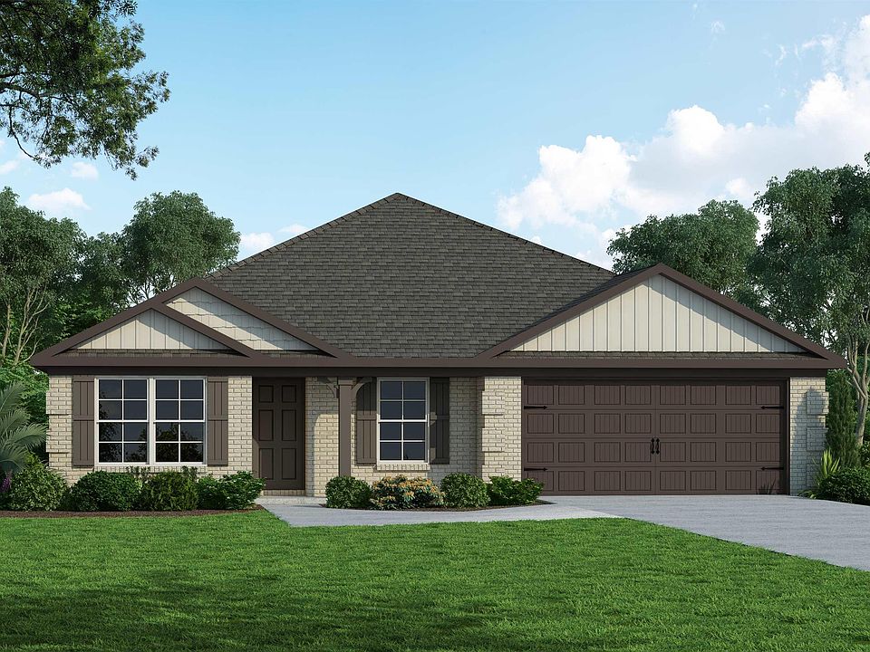 This beautiful home offers the homeowner a spacious floor plan featuring 1,676 square feet of living space. With 3 bedrooms and 2 baths, this particular model is the perfect size for growing families or frequent house guests. Its spacious interior guarantees that you and your loved ones have adequate personal space, as well as ample space for social activities with a powder bath on the first floor and two full bathrooms upstairs. The laundry room is conveniently located upstairs and with a huge shelve-lined walk in panty off the kitchen it will be easy to keep clutter out of sight. The exterior of this home boasts a richly detailed brick exterior and a covered back porch.