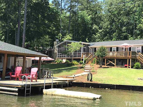 Large waterfront with beautiful views of Lake Gaston. Completely remodeled in 2012. 3 bedrooms, 3 full baths, large kitchen/dining/sitting room that leads to screened porch. Beautiful, rustic living room with wood floors and stone fireplace overlooking lake. Separate kids tv room and extra large bonus room with full bath. Beautifully decorated. Large deck. Beautiful boathouse and dock with two electric boat lifts, floating dock and boat slip. Separate Swimming pier. Home completely remodeled in 2012.