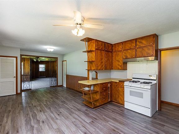 Opportunity Alert! This is a large home in very quiet area that provides so much for the price! Located on over a half acre on a dead end street this ranch style home is full of possibilities and listed $20k under assessed value. This one family owned home was built to last and features 3 bedrooms, 1 non conforming bedroom, one full bath and a half bath. Living room has plenty of space, storage, gas fireplace and woodwork that provides that cabin feel. The roof and gutters were replaced this year, new flooring throughout, fresh paint and an updated water heater, vinyl windows, vinyl and stone siding to give the new owner a jump on the potential this house possesses. The over-sized two stall attached garage is equipped with woodworking area, plenty of shelving and storage space and also access to the Large back and side yards that have a detached garage and two storage sheds. This home will go fast, check it out before its gone!