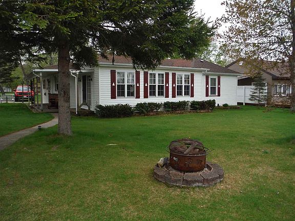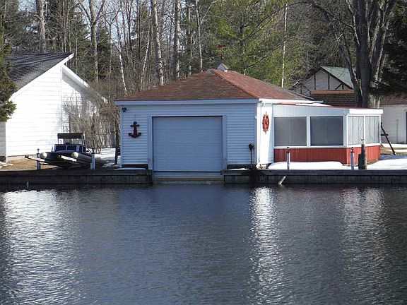 Charming cottage situated on 112 ft. of canal frontage, offering 2 bedrooms, 2 bathrooms, rustic knotty pine interior and not just 1 fireplace, but 2!! Great vacation getaway or year around home with 2 detached garages, storage shed and a boat house!! Pull your pontoon right into the boat house and say goodbye to all the sun fade, dirt, pollen and bird messes on your boat. This cottage is just a couple minutes from the main entrance to the lake. Leave your cares at the door and let Northern living take the stress right out of your life. Great fishing in the canal, large yard for children and pets to play and more peaceful than you can imagine. Close to town for added convenience. Call for your private tour today!