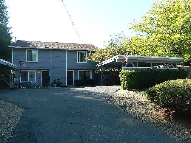 Very nice duet home with laminated floors on lower level, full size washer/dryer, 2 car carport with storage shed and huge backyard!
