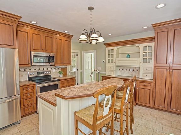 - Kit Dscrp: Flooring - Stone/Ceramic Tile, Breakfast Bar / Nook, Kitchen Island, Stainless Steel Appliances, Recessed Lighting, Chair Rail