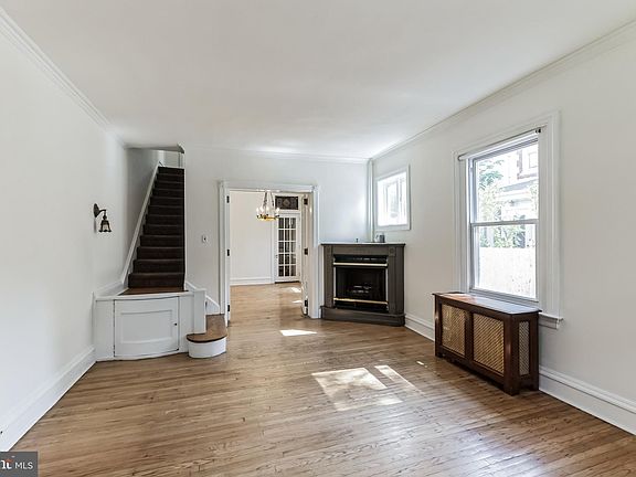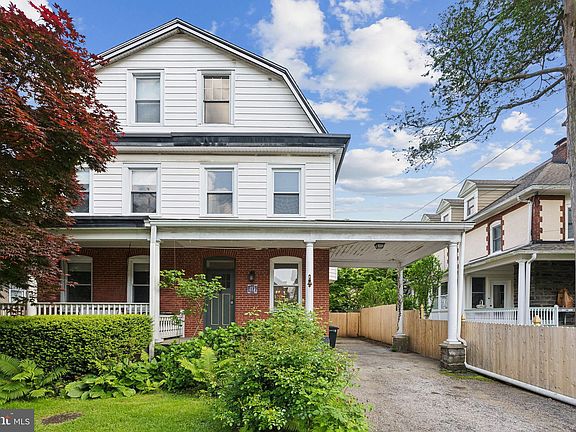 Nestled in sought-after South Narberth within walking distance to downtown, this freshly painted twin home with private, partially covered driveway awaits your personal touch! A gracious front porch—perfect for lounging and people watching—lends the home curb appeal and charm. Inside, you’ll find hardwood floors, intricate moldings and abundant natural light. The main floor features a well-sized front living room that connects via French doors to a cheery dining room with closet and beautiful stained glass transom window. Just beyond sits the kitchen with glass cabinetry, newer refrigerator, gas cooking, tile backsplash and closet pantry. The kitchen opens to a light-filled rear room with slate floor and lovely backyard views that could easily serve as a breakfast or sitting room. A laundry closet with newer washer and dryer and powder room complete this seamless first floor. Upstairs you’ll find two secondary bedrooms, a full hallway bath and a primary bedroom with custom closets and hardwood floors. A short flight of stairs leads to the fourth bedroom, which could also function as a playroom or home office if desired. Outside, the flat, fenced backyard features mature trees and shrubs for optimal privacy. The sidewalk-lined streets in this friendly community lead to premier attractions and amenities, less than .2 mile from the train, Narberth Park, plentiful shopping and dining, Whole Foods and award- winning Lower Merion schools. Centrally located and filled with potential, this home beckons motivated, visionary buyers craving convenience and old-world charm.