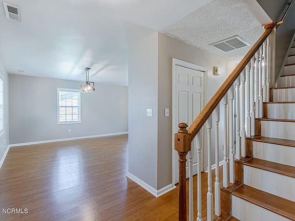 Welcome to this spacious 4-bedroom, 2 ½-bathroom home located in Jacksonville! This charming property has two large living areas on the main floor, one in which features the electric fireplace. The kitchen maintains all stainless-steel appliances, a WATER FILTERATION SYSTEM, and water softener! The second floor includes the LARGE primary owner's suite and THREE guest bedrooms! The backyard has a good size deck, fully fenced in yard, and large shed. Not only is this property located in a cul-de-sac, but it is conveniently located near shopping centers, schools, restaurants, and bases! Another PLUS is the roof and HVAC system were both updated in 2020 and the interior was just freshly painted! This property has no HOA or CITY TAXES. This property is a must see!