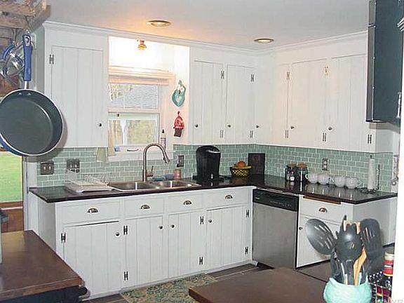 Adorable Cape in the Village of Hamburg with recent upgrades! Both bathrooms remodeled, one with heated floor and one with vaulted ceiling and skylight. Kitchen updated with wainscoting and new tile floor and tile backsplash. All bedrooms neutrally painted, some hardwood floors, new a/c, and driveway. Woodburning fireplace for those cozy nights. Upstairs has an extra finished attic room which could be an awesome walk=in closet/dressing room. Basement dri-locked. Glass block windows in basement along with FIOS! Electric pet fence included (not collar) and outdoor patio next to garage.