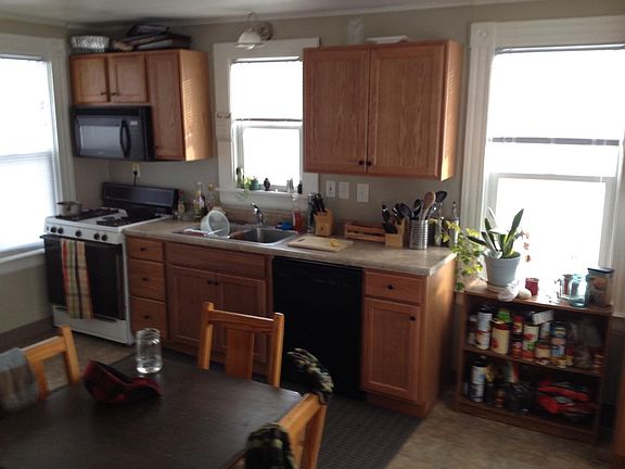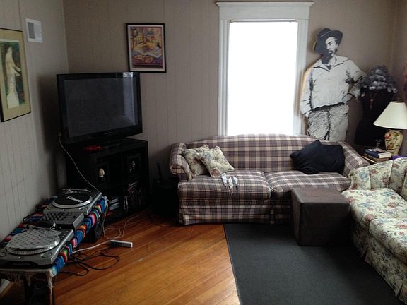 4 large bedrooms, 1.5 bathroom, washer/dryer in unit, a/c, large kitchen, dishwasher, free off street parking, on bus route, 2 porches. Lease starts at noon on August 1st, tenant responsible for utilities and snow removal, owner will take care of yard work.