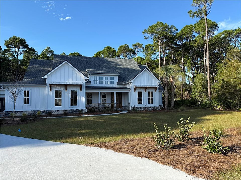 Welcome to this stunning NEW CONSTRUCTION home in the sought-after gated community of Cumberland Harbour! This 4-bedroom, 3.5-bathroom home offers spacious southern-style living with thoughtful details and custom upgrades throughout. Step inside the large great room with gorgeous hardwood floors, a vaulted ceiling, a stacked-brick fireplace flanked by custom-built-in cabinetry, and a wall of windows bringing in natural light. The open-concept floor plan encompasses the great room, kitchen, and dining areas, providing ideal spaces for dining and entertaining with family and friends. The kitchen features Stainless-Steel appliances, granite countertops, and soft-closing drawers and cabinets. The primary suite on the main level serves as a luxurious retreat with a vaulted ceiling, a generous walk-in closet, and a spa-like bath with dual vanities, a separate soaking tub, and a glass-enclosed shower. The great room opens to a large, screened-in, covered rear patio overlooking a beautifully landscaped, private backyard with a wooded common area beyond. With numerous closets and a large, unfinished walk-in attic, this home has plenty of storage space. An office with an accent wall and 10ft ceilings in the second bedroom are just a few of the additional features included throughout this quality-constructed home. The 3-car garage features 2 oversized garage spaces and 8ft tall doors, with the option to use an app to open the garage doors. Located in an ideal setting with views of the community lake in front, natural wooded common area behind the house, and a very short walk to the community amenities, including the clubhouse, swimming pool, tennis courts, fitness center, and walking trails. Come and enjoy all this NEW CONSTRUCTION home has to offer in highly desirable Cumberland Harbour! Please call for more information or to schedule a tour of the home at your convenience!