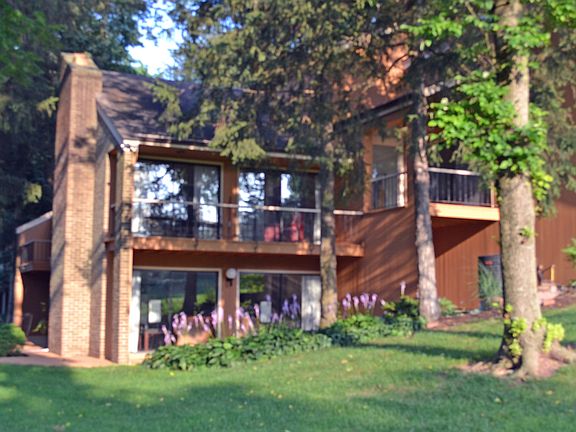 From the time you enter the large, open foyer you are surrounded by light and spectacular views through one of the home’s ten sliding glass doors. Six separate decks and patios allow you to relax and enjoy the serene views of the golf course and wooded property. The house projects an open and airy feeling – it is the perfect house for entertaining. The upper level of the home features an award winning eat-in kitchen and a separate dining room and living room. The large, central granite island serves as the focal point of this eat-in kitchen featuring new contemporary all-wood cabinetry, built-in stainless steel appliances including a five-foot-wide built-in refrigerator/freezer, built-in convection oven, microwave oven, warming tray, and an under-counter wine cooler. Two separate oversize sinks set in the expansive granite countertops. The dining room, with its exterior deck and views, provides a relaxing atmosphere for large family dinners. The adjacent living room has a sixteen foot wall of sliding glass doors to a private deck that overlooks the second green of the golf course. The laundry and garage are adjacent to the kitchen area. A master bedroom suite and a second bedroom completes this level. The master bedroom has a walk-in closet and a newly remodeled private bath. A private deck with a twelve-foot sliding glass door brings the outdoors into this space. The lower level of this magnificent home is connected to the main level by a large, light-filled open stairs. This level contains a family room, two additional bedrooms and a full bath. The large family room has a brick, wood-burning fireplace, a separate wet bar area and three sliding glass doors leading on to a private exterior patio deck. Each bedroom has a large closet and a sliding glass door which access a exterior patio deck. A storage room and an additional sixteen foot by 36-foot utility space, that the current owners use as an exercise space/studio, completes this level. The home features new lighting and a new state of the art gas/electric hybrid heat pump system.