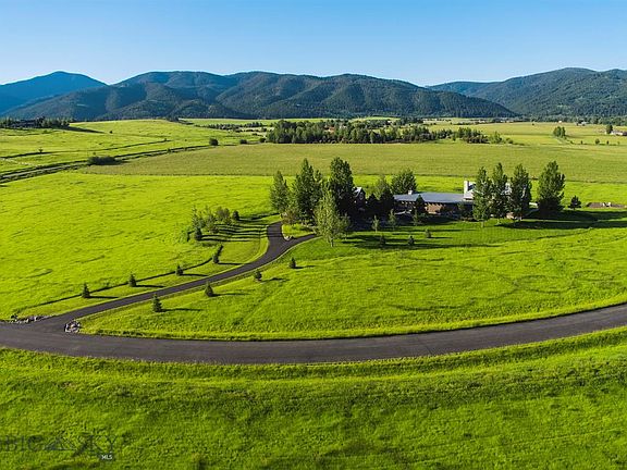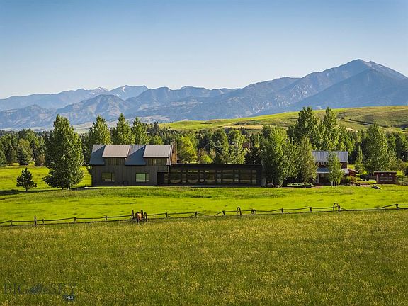 An exceptionally rare offering just four miles south of downtown Bozeman. Watch elk graze in the hayfield, and relax on the patio with spectacular views of the Bridgers, Gallatin Range and Spanish Peaks. Designed by acclaimed architect Stephen Dynia, this 4-bedroom, 5-bathroom, 6,296-sq. foot legacy home sits on 17+/- acres and features an open floor plan and first-floor master; two upstairs bedroom suites; an office, movie theater, wet bar, and wine cellar downstairs; plus a guest room and kitchenette above the garage. The outdoor living space, which includes a large deck, patio and a fireplace, is ideal for entertaining guests during those long Montana summer nights. Horses are allowed. Additional 20 acres available.