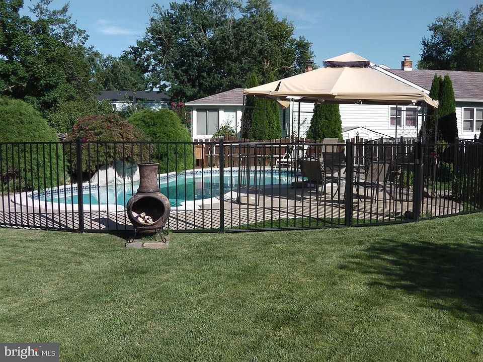 Beautifully maintained and updated throughout! Welcome home to this Extraordinary property nestled in the tranquil Holiday on the green community in Mt Laurel. This home is situated on a large piece of ground, with manicured lawn, terrific curb appeal, and is beautifully landscaped with lots of privacy. As you walk up to the front door, a large front porch with columned front, welcomes you and is a great place to relax in the warm weather. Once inside you'll find a home that is fresh, bright, and meticulously maintained. The gorgeous hardwood flooring and neutral wall coloring greets you and complements the style of this spacious Home. As you walk thru the front door, into the foyer, notice the beautiful hardwood flooring which extends throughout the Living, Dining, and Family Rooms. The Living Room features windows that provide exceptional views of the front of the property and flood the home with light and warmth. The spacious dining room, opens up to the kitchen, which is great for entertaining. Delight in serving those meals from your beautifully designed eat in kitchen with white cabinetry, lots of Counter space, granite counter tops, Custom tile back splash, flush mount sink, Stainless steel appliances and Ceramic Tile flooring. This main level also features a large Family room with 2 sided fireplace and Anderson sliders to the patio and pool area, as well as a study room and an updated powder room. The fully finished Basement offers a gas Fireplace, built in shelving and plenty of storage place. Going up, the upper level features 5 generous size bedrooms , including a Master suite offering a private master bathroom with a stand up shower, and a large closet. Another updated full bath is shared by the additional bedrooms. As you go outside to the large fenced backyard which features a large patio area, Gunite in ground pool with fabulous waterfall, and a shed. Notice that the outdoor space provides a tremendous sense of peace and tranquility. This magnificen