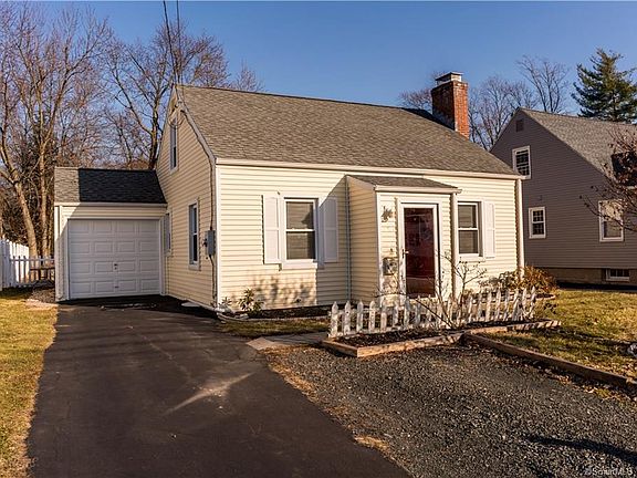 Move right in Sunny cape with open living room with fireplace and dining room is perfect for entertaining. Updated white kitchen with eat-in space. Main floor offers 1 bedroom and a full bath.. 2 additional beds and 1 full bath upstairs. Replacement windows, vinyl siding, gas boiler. 1 car garage.