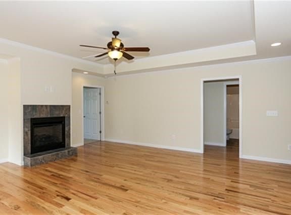 - Tray Ceiling(s), Dual Sinks, Fireplace, Main Level Primary, Pull Down Attic Stairs, Smooth Ceilings, Solid Surface Counters, Tub Shower, Vaulted Ceiling(s)