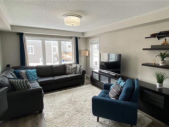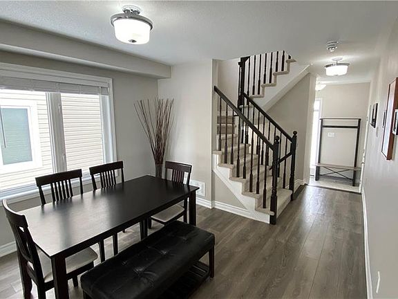 Beautiful 3bed, 2.5bath end-unit townhouse in excellent condition on a quiet street. The main level features a bright & open concept kitchen/dining/living area, foyer with a handy front hall closet, powder room & attached garage. Kitchen upgrades include breakfast bar, quartz countertops, marble backsplash and SS appliances. Quartz countertops match in the kitchen and bathrooms. The second level features a spacious primary bedroom with a sliding closet and a walk-in closet, 4 piece ensuite, two additional bedrooms, 3 piece bathroom & separate laundry room. The basement awaits your finishes and has rough-in ready for another bathroom. PVC fence installed in 2019, backyard is ready to be enjoyed! Conveniently located in a family friendly neighbourhood close to schools, parks, grocery stores, the 416/417 highways, public transit, NCC trails & tennis courts. Offers to be presented on Sunday April 10th at 3:00pm, however seller reserves the right to review and may accept pre-emptive offers.