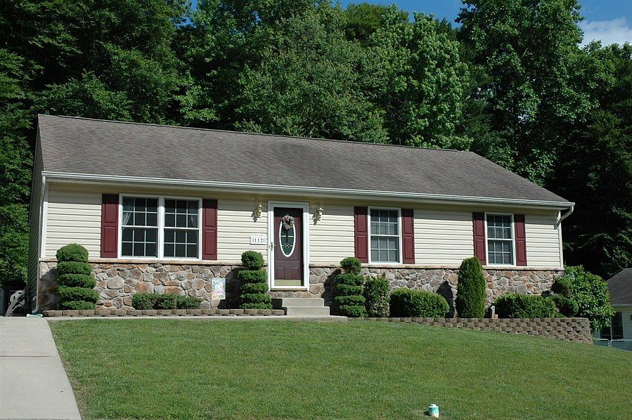 Great stone and vinyl rancher in Colonial Ridge. 3 bedrooms, 2 baths, huge country kitchen with ample cabinets, large living room, and finished family room in lower level. Fenced rear yard with above ground pool and storage shed.