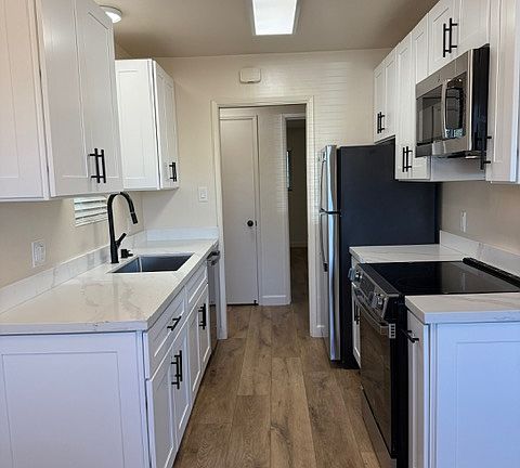 Lg. 950 sq. ft. Newly updated single level 2 br., quiet gated apartment home on non-multi-unit area cul-de-sac, easy walking distance to BART & shopping! Private rear yard, pool, laundry hook-up in unit OR coin laundry on site, wood flooring, mini-split heating & air systems, dishwasher, microwave, extra storage locker. Totally NEW Kitchen & Bathroom! Be the first to live in this beautiful brand new remodel! Garbage included. Tenant pays water & electric.