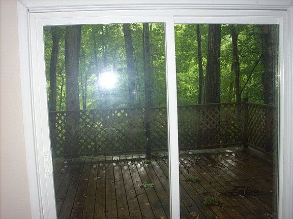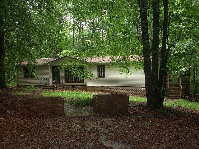 Large heavily wooded lot with creek, and property borders common recreational area. Trail around 40 acre neighborhood, horses permitted. Various renovations have been completed in the home. Some flooring, all windows and roof recently replaced. One bathroom has been renovated, and painting completed in majority of home with molding added in some areas. Two large decks, brick underpinning, and property is under one tax. An added bonus is 1/8 ownership in the common area also goes with this property. The recreational area has a tennis court, and a basketball court. Some repairs may be needed. No net in tennis court.