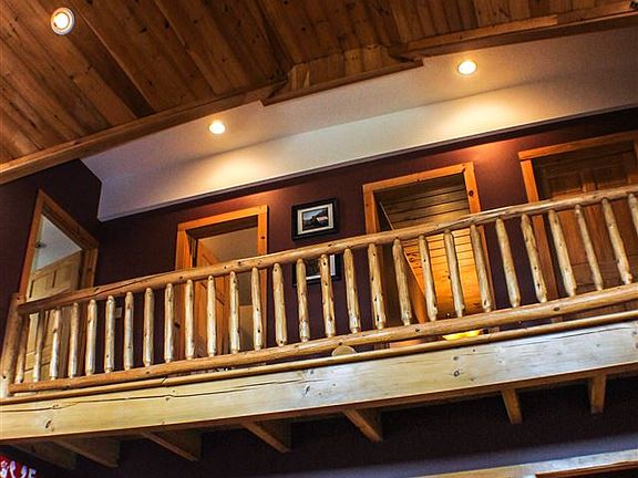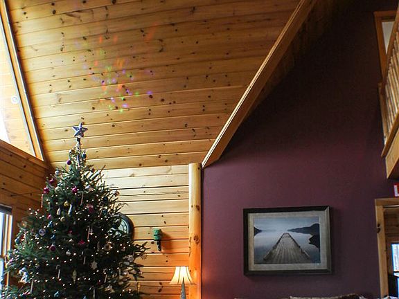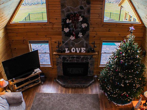Beautiful log home on apx 8 acres. Prvt drive and setting.Living room has vaulted ceiling and field stone fp (w/gas ins) and balcony.Master br on 1st fl with jaczi tub & shower.1/2 bath and laundry1st floor.Bedrms 2&3 and full bath on 2nd fl.Great eat-in kit w/ss appliances,island,ceramic flr &granite counter tops. Finished basemt with bar, 4 wall mounted tvs and gas stove.Also an unfinished bath.A pellet furnace attached to gas furnace.Ingrnd pool,pool house & att 2 car gar.Bk on mkt pndg signed release