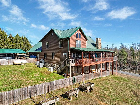 Beautiful log cabin with an amazing view and neighborhood access to the Hiawassee River with no HOA. Property includes tiny house and lot behind house for a total of 1.84 acres. The tiny house on the property was built in 2021 with heat and air, mini kitchen, & full bathroom making it a great short term rental. Generator is hooked up to the house and automatically cuts on when needed. || Recent improvements include: Front window and glass replacement with UV film, back yard Fence, stairs off back porch, Generac whole home generator, 500 gallon propane tank, updated gas logs, updated master bathroom, updated kitchen countertops, 2nd HVAC unit for upstairs, RV plug, & new well pump. ||