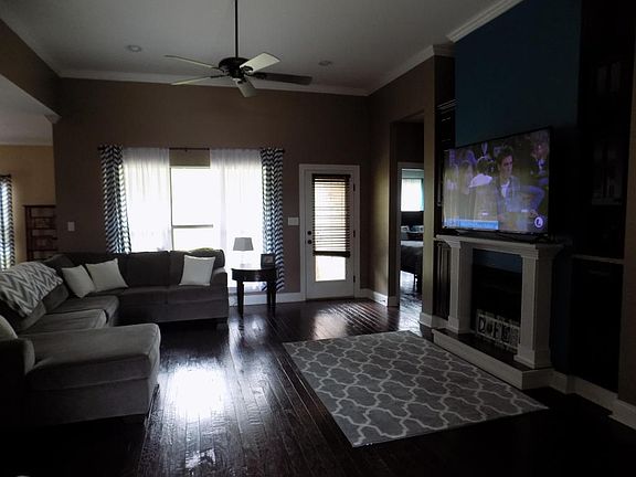 French Country brick home on quiet cul de sac. 4 bedrooms, 3 bathrooms, 3 way split floor plan, trey ceilings, oversized whirl pool tub. Large open floor plan. Open kitchen with stainless steel appliances, walk in pantry and solid granite counter tops. Beautiful hardwood floors and fireplace in living room. Fenced in yard and covered back porch.