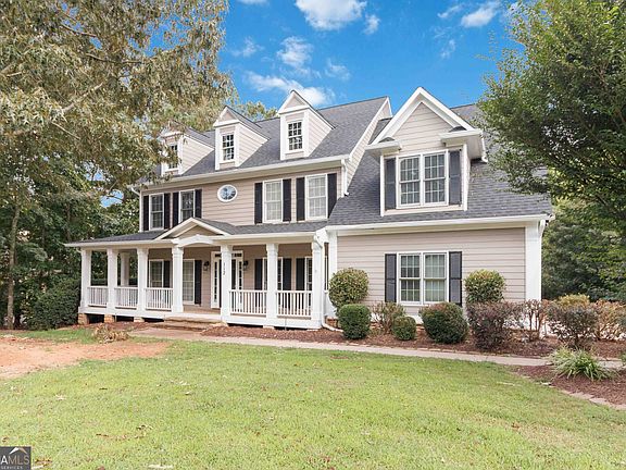 Welcome to Creekside Estates, a picturesque community in the heart of Cherokee County where charm, space, and convenience meet. This beautiful 5-bedroom, 3-bath home offers exceptional living with thoughtful design features throughout. Begin your mornings on the inviting rocking chair front porch, then step inside to discover a spacious layout ideal for both entertaining and everyday living. The main level includes a formal living room, a separate dining room, and a family room with a cozy gas fireplace. The kitchen is a chef's dream, complete with stained cabinetry, a double oven, breakfast bar, and ample counter space. Perfect for hosting, the main floor also includes a guest bedroom and full bath. Upstairs, the primary suite features a large en suite bath, dual vanities, and generously sized walk-in closets. Additional bedrooms are roomy and versatile, and built-in shelving adds charm and functionality. Need more space? The full unfinished basement offers endless potential for a home gym, media room, workshop, or additional living area. Enjoy nature and recreation just minutes away waterfall, Veterans Park, and other local favorites are just around the corner.
