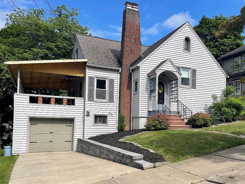 Very unique house on the west side, walking distance from two schools and Rec Park. The front of the house has a concrete driveway leading to a one car garage and lots of updated landscaping. Solid wood arched front door and hardwood floors throughout the house. Nice size living room with a fireplace and opens up into the dining room. There’s a door off the living room that leads to a beautiful covered porch that is concrete and is 11.3 x 21.3. Off the dining room is a retro style kitchen with metal cabinets and a matching stove that still has the owners manual. Off the kitchen is a nice pantry with plenty of storage and natural light. Second floor has two bedrooms and a retro bath with blue tile and an arched shower. Two more bedrooms on the third floor. Walk out basement with tall ceilings, laundry hook ups and a separate work shop. New furnace installed in 2020. Backyard has stone walls and a water feature. With some TLC and creativity this house could really be one of a kind.