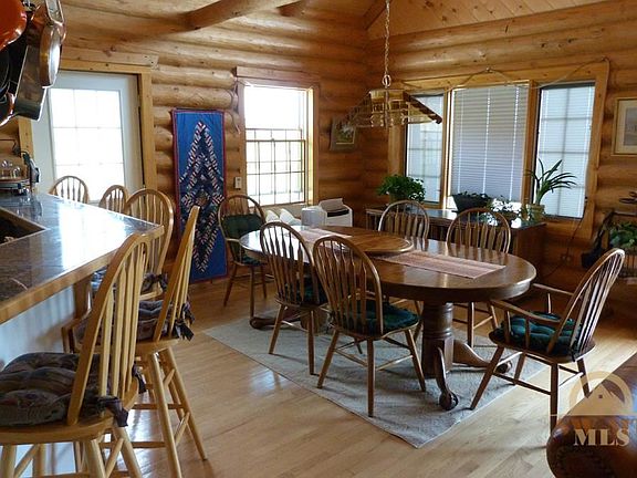 3-bed, 3-bath log home on 93.7+/- acres. Hand-peeled lodgepole pine logs, red oak flooring, vaulted natural aspen ceiling, radiant floor heat. Kitchen: maple cabinets, tile floors, granite tile counters, pantry. Daylight bsmnt: 1-bed, 1-bath, family room. Upper floor loft: 1-bed, 1-bath, sitting area. Daylight, attached 2-car garage. Wrap around deck. Views - Crazy Mtns, Beartooth Mtns, Yellowstone River valley. Log workshop w/electricity & wood stove could be converted to guest cabin. 2 wells, spring.