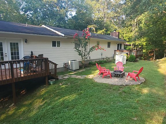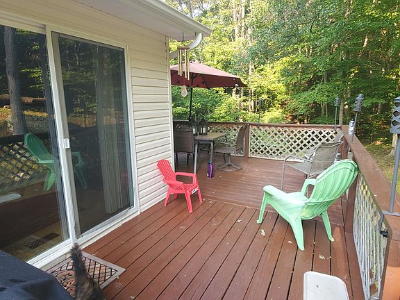 Spacious bi-level on a beautiful wooded setting on nearly an acre with a view of the neighborhood! This home has so much to offer beginning with a light filled living room open to the dining room and an appliance filled kitchen. Patio doors off the kitchen lead to an L-shaped deck overlooking the backyard. Four nice sized bedrooms and three full baths make this home roomy for all. Gorgeous owner's suite with hardwood flooring and french doors to a private deck, a 9'5'' x 7'8" walk-in closet and a private bath with tile flooring, jet tub and shower. Three bedrooms on the main level along with a second full bath in addition to a 4th bedroom and full bath on the lower level. Lower level gathering room with wood burning insert. Lots of storage and closet space. Large two car garage and plenty of additional parking. Don't overlook this great home just minutes from Beech Fork State Park!