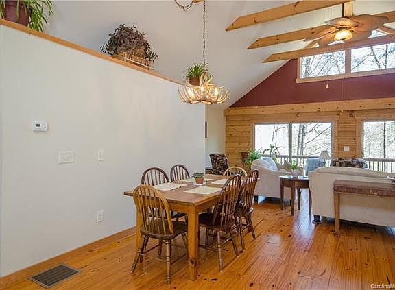 A luxurious mountain lifestyle awaits as featured in Dirty Dancing, filmed here in Lake Lure. You are a 2 min drive from the lake, or bike/golf cart ride. This three bedroom/two bath cabin comes loaded with community amenities- the lake, community beach, paddle boat/canoe/kayak rentals, pontoon rentals, boat launch, tennis courts, restaurants, swimming pool with lazy river, whirlpool, steam room, sauna, fishing, mini golf and more. The home offers expansive living/dining areas designed for gathering large groups of family and friends. Seller paying $5,000 community initiation fee. Dues only 300/mo for this world class amenity package.