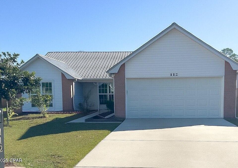 This property is freshly painted and features Luxury Vinyl Plank (LVP) flooring throughout the main living areas. It boasts a new AC unit and a brand-new garage door, along with a durable metal roof.