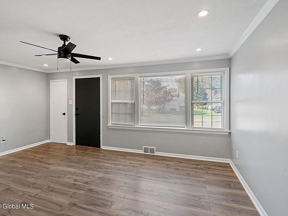 Step into this beautifully refreshed 3-bedroom, 1-bath ranch home nestled in the in the Schenectady School District. Featuring a harmonious blend of classic charm and modern flair. Its spacious open floor plan is freshly painted and offers ample recessed lighting, crown molding, solid surface counter tops, stainless steel appliances, updated ceramic tiled bath, central air, large finished basement, vinyl sided with 1-car attached garage. Ready to move in!