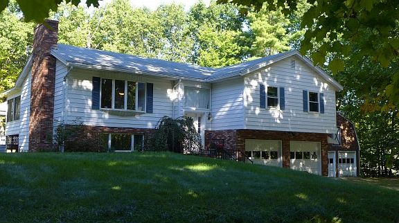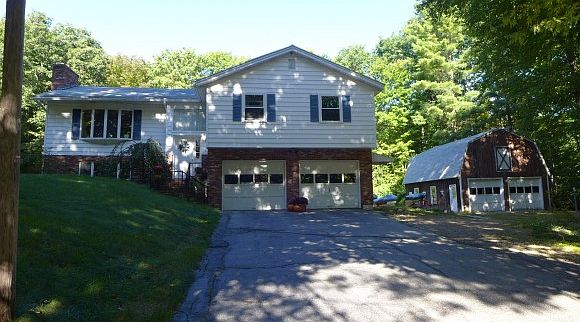 Beautiful Maintained and Updated Home that shows pride of ownership throughout. Very spacious and homey. Main Level offers: Master bedroom with master bath, 3 additional bedrooms and bathroom, hardwood living room with brick fireplace, dining room, big bright kitchen with updated appliances, huge 3 season porch with skylights leads to a large private deck. Lower Level offers mudroom from the walk out basement, 1/2 bath, laundry room, family room and additional office/den/workout room. Large 2 car garage along with detached oversized 2 stall garage/barn. Walking trails from the backyard, stone walls. Great location only 2 miles to the highway, minutes to the school. This home is beautiful and has been well taken care of. Move right in!
