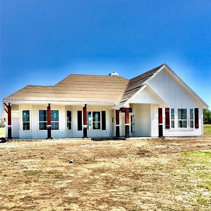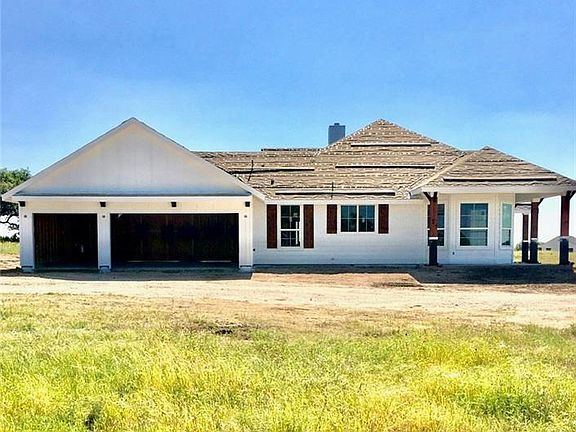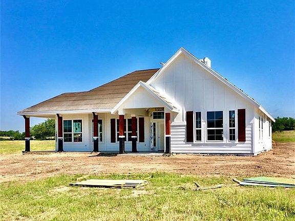 Modern Farmhouse plan w/large wrap around porch & 3 car garage on 5 acres w/very large oak trees. House in pictures is the same floorplan at another location. House will feature custom cabinets, granite countertops, commercial gas range, lots of windows, designer lights & tile. Buy now and make selections. Detached metal garage can be built for additional fee call builder for more details. Bentley Ridge is a new large acre development minutes from the city of Burnet and high school. Bring your horses!