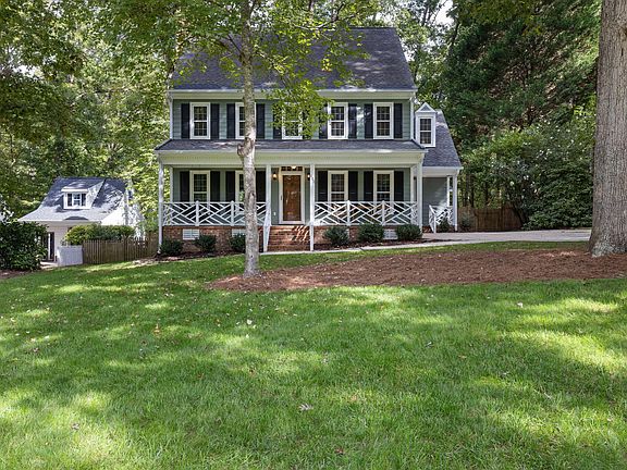 Nestled in the heart of Cary rests 112 Donna Place on a picturesque lot in a peaceful cul-de-sac street. This well maintained, traditional home boasts modern updates making it perfectly move-in ready. Adorned with new landscaping and a generous front yard, the phenomenal curb appeal welcomes you to a covered front porch entry. Enter through the front door to be greeted by beautifully maintained hardwoods throughout, including recently added hardwoods in the main living area and kitchen (2023). The original wood burning fireplace is the centerpiece of the updated primary living space with accenting wood trim and modern white paint. Continue into the new custom kitchen with beautiful matte black wood cabinetry, marble countertops, new stainless steel appliances, floating wood shelves, farmhouse sink and chic bronze hardware to tie it all together. An updated powder room is privately located in the hallway with a custom tile floor, floating vanity and new lighting. Two dining areas, including a breakfast nook, give ample seating area to gather with family and friends. Just around the corner from the kitchen, you will find a full sized laundry room with updated tile flooring. Enjoy your convenient keyless access through the owner's entry that sits adjacent to your drop zone area. On the second floor, you will find three generously sized bedrooms including a primary suite with dual walk in closets. Both primary bathroom and guest bathroom were updated in 2019 to include custom wood vanities, granite countertops, upgraded tile selections, and a frameless glass shower in the primary bathroom plus a new large capacity water heater added in 2024. On the third floor, relax in a cozy, updated bonus space accented with a shiplap ceiling, perfect for a media or playroom or settle into your perfect work from home office just off the stairs to the left. Venture into the backyard where you can enjoy the peaceful sounds of nature. Highlights of this space include a fully fenced in area, a privacy wall on the deck, and a flat, easy to maintain landscape. Just around the corner from both Downtown Cary and Apex, greenway access, parks, and desirable schools, the location doesn't get much better. If you're looking for a true gem of a home, you've found it!