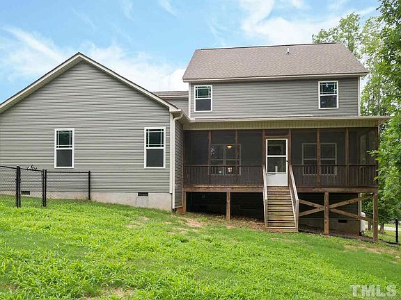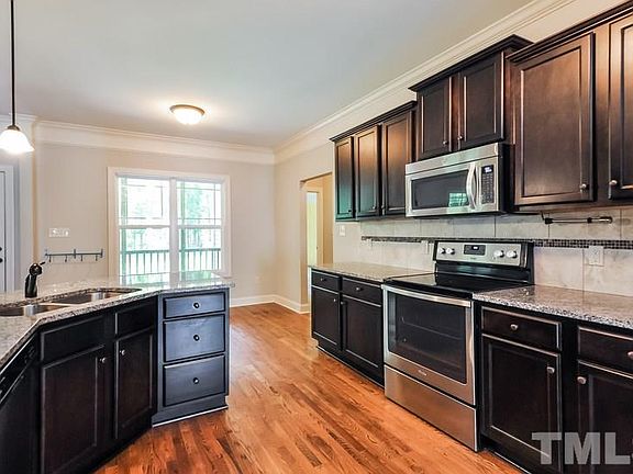 This Clayton two-story offers stainless steel appliances, granite kitchen countertops, hardwood flooring, a gas fireplace, and a screened-in deck.