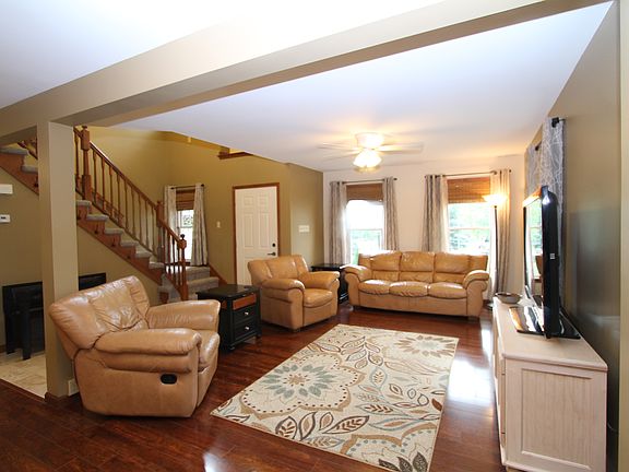 Stunning, updated two-story home in Graysdale! This immaculate home features a large great room with rich Pergo floors and a gorgeous 2-story entryway with travertine flooring. Enter into a large family room complete with gas fireplace, vaulted ceilings, skylights and beautiful custom light fixtures. Attached to the family room is an upgraded eat-in kitchen, with gorgeous countertops and travertine backsplash. The kitchen also boasts a large bar area, which is great for entertaining family and friends! Walk out from the kitchen into a 3-season sunroom, which is equipped with a gas stove... and accessible to the backyard or back porch with privacy fence. The large, first floor master suite has new carpet, huge his/hers walk-in closets with adjustable shelving and a lovely update master bathroom. The second level of this home has all new carpet, three nicely sized bedrooms and large bathroom. Situated on a private cul de sac this beautiful property has so much to offer!