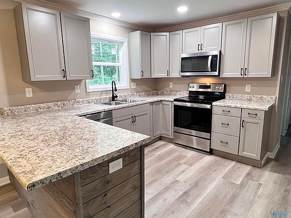 Completely Remodeled FOUR BEDROOM Rancher in Hartselle City Schools!!! From the roof to the floors, everything has been updated! New living room space w/ open feel. Three guest rooms on one side and a Primary Suite w/ Brand New bathroom on the other. Everything here just pops! Refinished hardwoods through most w/ some LVP in wet areas. This remodel turned out so nice... Fenced in backyard w/ workshop. Concrete patio just off the backyard deck. All New Windows, New Roof and New Siding!!!