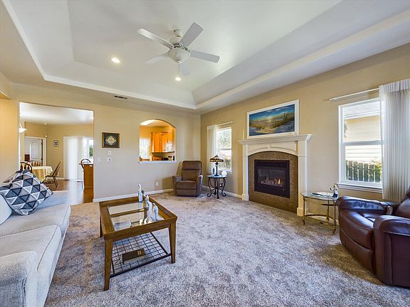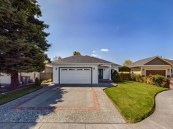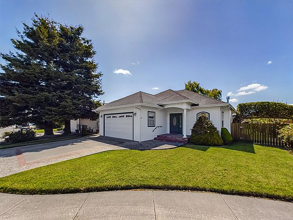 What a charming gem! This custom-built single-story home has been beautifully cherished & maintained and it shows. Located in a desirable cul-de-sac neighborhood in downtown Fortuna. You'll love the lush backyard with pretty landscaping, southern exposure, and a large covered deck that is perfect for entertaining & relaxation. Inside, you'll find a warm & bright spacious living room with new carpet, high tray ceilings, and a cozy gas fireplace. The open dining room features a slider to the deck for easy access to the outdoors. The kitchen includes stylish shaker style cabinets, a breakfast bar, and a newer fridge. The large primary suite offers a slider to the deck, high tray ceilings, generous walk-in closet, and an ensuite bath with a jetted tub & separate shower. A must see home!