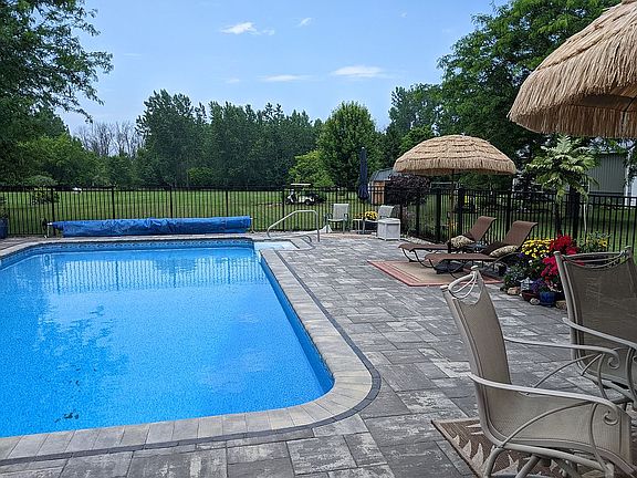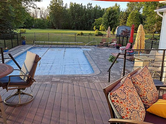 fenced in-ground heated salt water pool (16’x32’) with gorgeous large paver patio and deck (completed 2018).