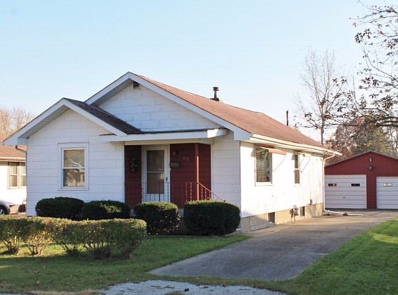 GREAT STARTER HOME OR LOOKING TO DOWNSIZE!!!! THIS 2 BEDROOM OFFERS PLENTY OF SPACE WITH OVERSIZED FAMILY ROOM, LARGE EAT IN KITCHEN, 90% EFF. FURNACE AND CENTRAL AIR UPDATED IN 2004, FENCED BACKYARD, BASEMENT FOR PLENTY OF STORAGE SPACE PLUS A DETACHED 2.5 CAR GARAGE. GARAGE SHINGLES NEED REPLACED AND SOME EXTERIOR HOUSE PAINTING.