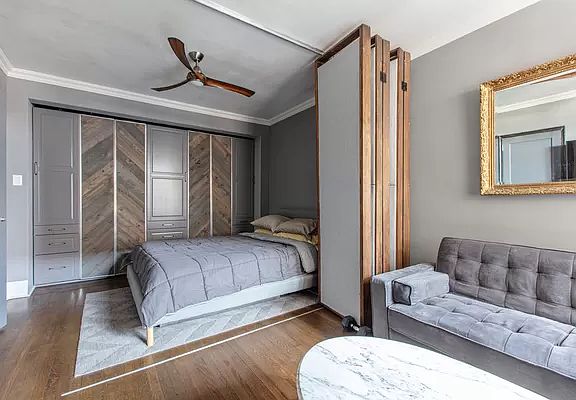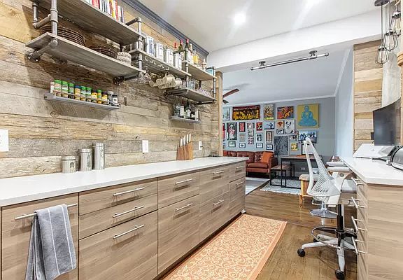 MODERN INDUSTRIAL CHIC DESIGN IN PRE-WAR COOP. This beautifully renovated and spacious fourth-floor apartment is a stylistic gem. Modern design features, which include an open floor plan and clean architectural lines, are seamlessly blended with pre-war features such as vintage hardwood floors, doors, and hardware, all of which have been restored to their original glory. Not a single square inch was overlooked during the renovation. The completely gutted bathroom features custom oak shelves and vanity, a solid marble vessel sink, marble floors/walls, and oil-rubbed bronze trim throughout. The huge kitchen boasts endless quartz countertops, a marble backsplash, and a kitchen nook that doubles as an eating space and workspace. The kitchen opens to a 240 sq ft living room with eastern exposures that easily accommodates a large dining table. Not to be outdone, the 240 sq ft bedroom at the other end of the apartment features a folding wall with noise-reducing acoustic panels that divides the spacious room into two rooms with separate entrances (the functionality of a 2 bedroom, for the cost of a 1 bedroom). Other updates include skim coated walls, new base, and crown molding, recessed LED lighting, marble window sills, ceiling fans, cedar lined closets, in-wall wiring for hanging flatscreens in the living room and bedroom, custom floor-to-ceiling cabinets in the pantry and bedroom that maximize storage space, and partially updated internal plumbing and electric. Located in one of the most popular pre-war buildings in Windsor Terrace, your future home is close to the F/G trains, B67/B69 bus lines, Prospect Park, the Windsor Terrace Library, Greenwood Playground, and just steps away from shops and restaurants such as Steeplechase Coffee, Batata Pita Bar, Jaya Yoga, Hamilton's, and Brancaccio's. The well-maintained building has two elevator banks, a live-in super, a very generous pet policy, a package collection system, a 24-hour laundry room, a recently refinished all-age appropriate playroom, a rehearsal/recording studio/music room, stroller/carriage or other all age appropriate small vehicle parking, bike storage, storage cages, composting, and a lush garden. Maintenance includes heat and hot water. There is an additional monthly fee of $60 that covers high-speed internet/cable TV/HBO/Showtime and a monthly assessment of $45.44 that is in place until 8/31/2022.