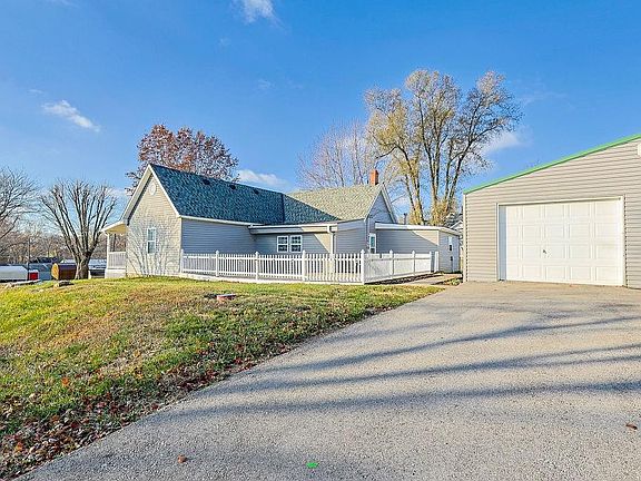 Adorable 3 bed, 1 bath, move in ready home on a large corner lot. Fall in love with the curb appeal boasting a dreamy wrap around porch. Walk into the spacious, cozy living room with a view through to the extra-large dining room, perfect for hosting get togethers. All level living with all bedrooms, full bath, and laundry on the main floor. The completely remodeled kitchen has access out to the porch and fenced in back yard, making this the place to be for summer BBQ's and bonfires. To top it off find all the space you need for the outdoor toys in the oversized detached garage. Brand new driveway in 2024 and new AC unit in 2022! Small town living less than 30 minutes to MCI/KC!